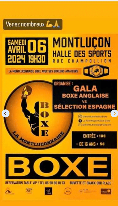 Boxe Amateur le 6 avril à partir de 19h30 à la Montluçonnaise – lieu : Halle des sports rue Champollion à Montluçon 03