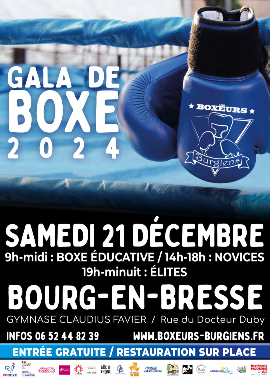 Boxe amateur chez les boxeurs burgiens le 21 décembre à partir de 14h00 a GYMNASE CLAUDIUS FAVIER, RUE DU DOCTEUR DUBY 01000 BOURG EN BRESSE