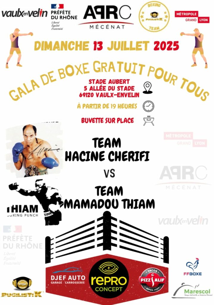 Gala boxe Amateur au Pugilistik le 13 juillet 2025 – stade Aubert – 5 allée du stade 69120 VAULX EN VELIN à partir de 19 heures