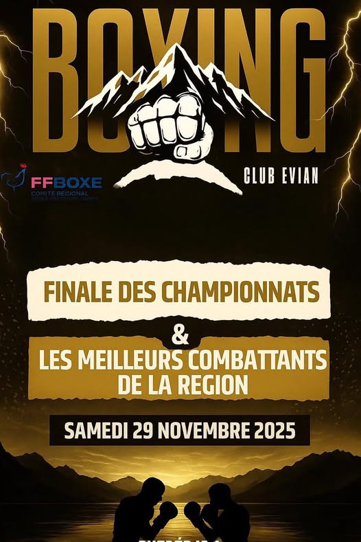 Finales du championnat régional senior Elites 30/11 à Evian Pesée à 13h00, début des combats à 16h00 – Halle Passerat 14 Nv Rte du Stade, 74500 Évian-les-Bains