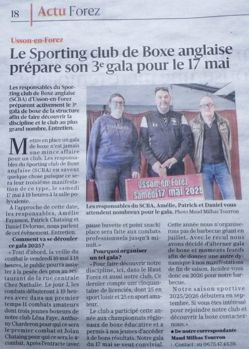 Boxe amateur et pro le 17 mai au club SPORTING CLUB BOXE ANGL PAYS ST BONNET