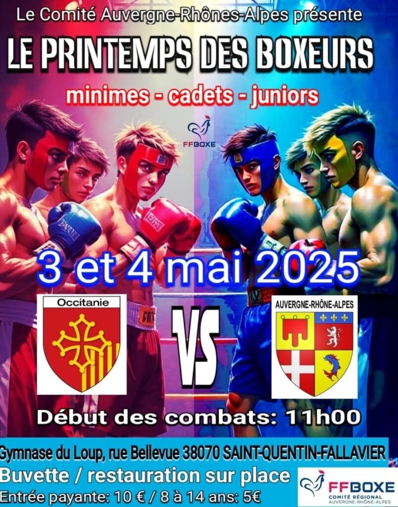 Veuillez trouver ci-joint les tableaux provisoires des combats qui auront lieu ce samedi 3 et dimanche 4 mai 2025 à Saint Quentin Fallavier.