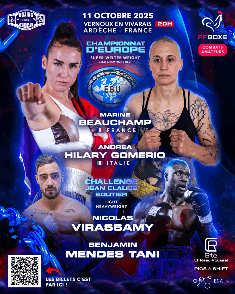 BOXE SAMEDI 11 OCTOBRE 2025 au VERNOUX-EN-VIVARAIS 07240 – GYMNASE MUNICIPAL à partir de 20h00