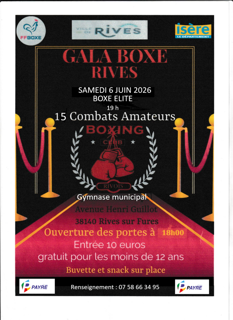 15 combats amateurs – Gymnase municipal avenue Henri Guillot – 38140 – RIVES à partir de 19h00