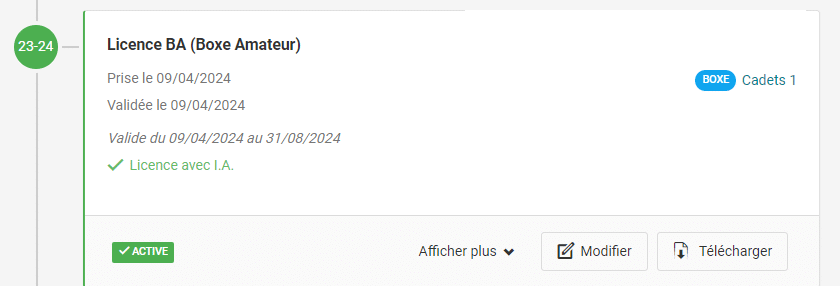 L’affiliation du 1er aout au 31 aout 2024 n’est qu’une pré-affiliation du club. Les licences des boxeurs et les affiliations seront effectives du 1er septembre, le prélèvement pour la nouvelle saison débutera à compter du 1er septembre.