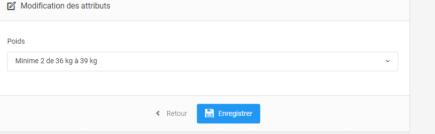 Choisissez la catégorie de poids parmi la liste déroulante et appuyez sur « Enregistrer »